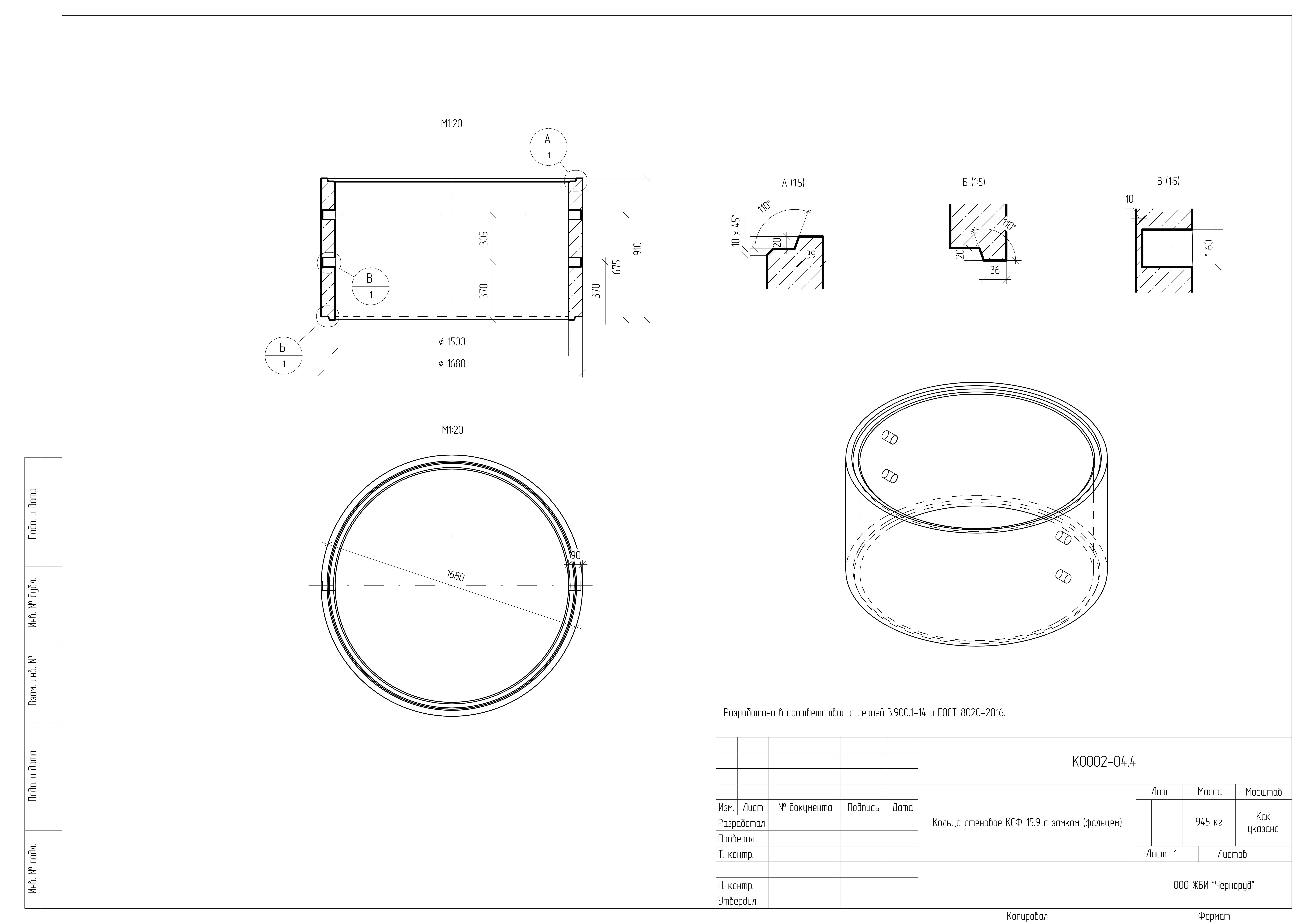 Кольцо стеновое КСФ 15.9 с замком (фальцем)