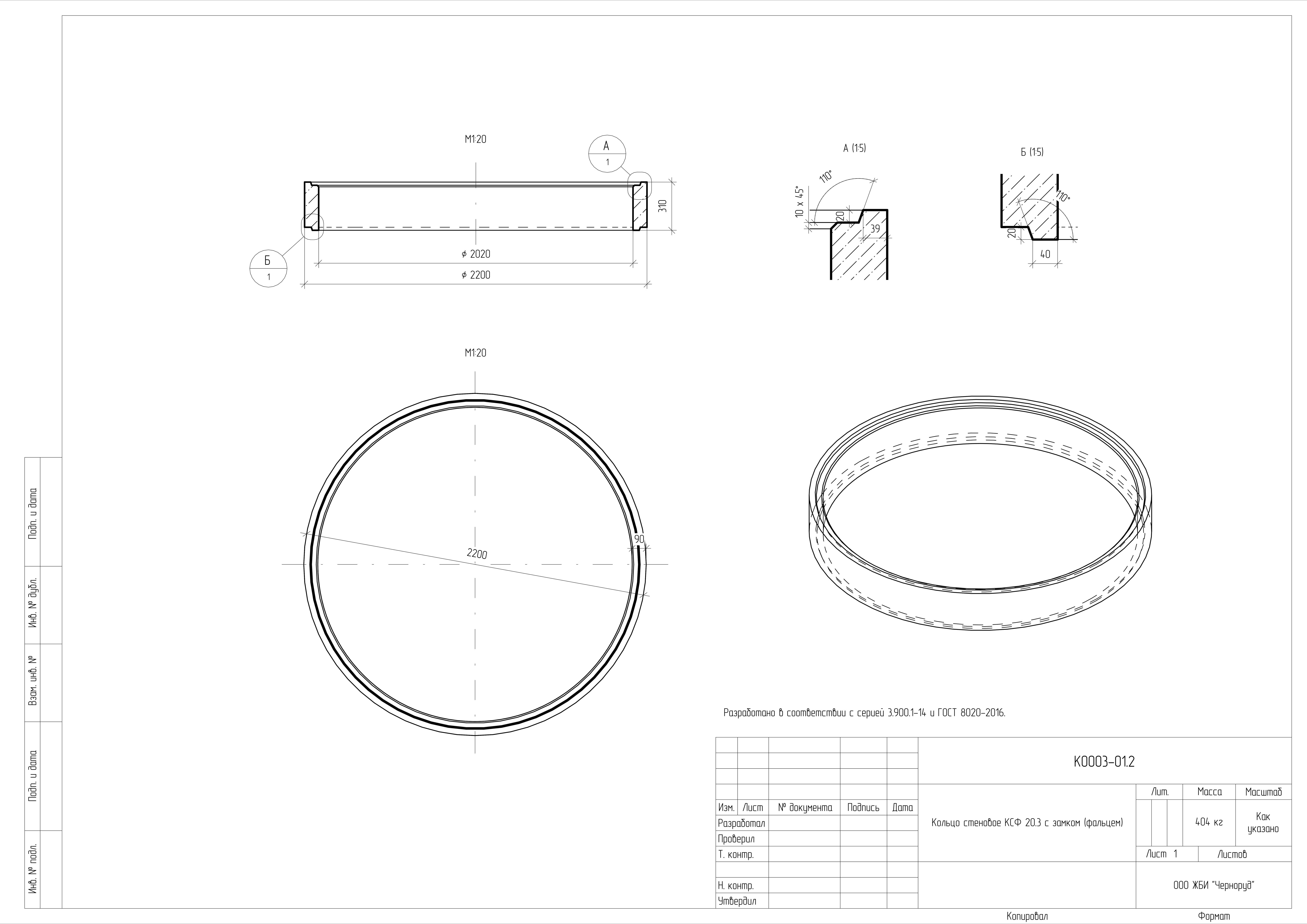 Кольцо стеновое КСФ 20.3 с замком (фальцем)